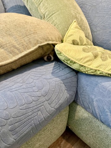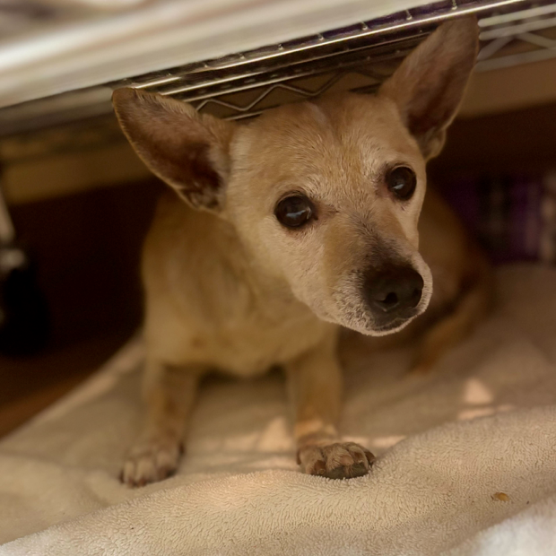 Every adoption story is different, but some remind us why we do what we do. Larry carried emotional scars from a past we couldn’t see, and they made him scared of the world. When he first arrived he had to be isolated due to an illness. He only felt safe when he was hiding in his bed, tucked under blankets, or hidden under pillows. Larry was even afraid to go outside during his first days with us. His eyes told the whole story: he wanted to trust, but fear was always there.