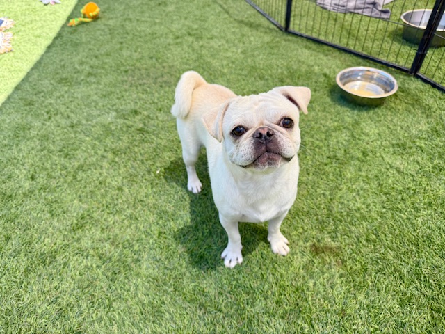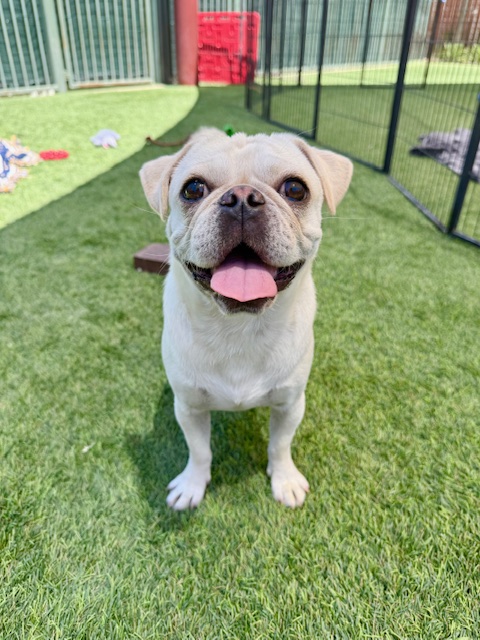Abbott is a 1-year-old pug mix with a big personality and an even bigger heart. Rescued from a high-intake shelter, he’s now looking for a forever family to call his own. This spunky little guy is full of energy and loves to play! Abbott is a social butterfly who gets along well with other dogs and enjoys making new friends. He’s currently learning his basic doggy manners and will need an adopter who’s ready to continue his training with patience and positivity. Abbott would thrive in an active home where he can be included in the fun and continue to grow into the amazing companion he’s meant to be. If you’re looking for a cheerful, outgoing pup to add joy to your life