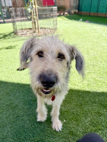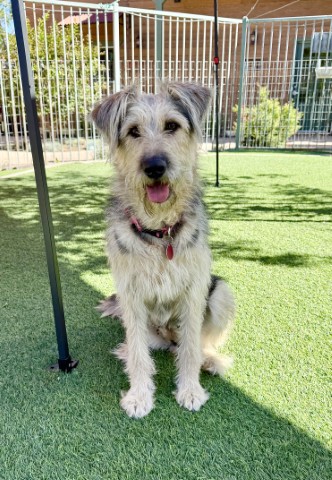 Aria is a 1 year old terrier mix with a heart as soft as her scruffy fur. Weighing in at 41 pounds, this sweet girl may be a little shy at first, but with time and kindness, her loving personality truly shines. Since arriving at the ranch, Aria has been learning that the world isn’t such a scary place, and with patience, she’s beginning to show her affectionate side. One of her favorite ways to connect is to quietly come up for a gentle head scratch once she feels safe and comfortable. Aria will thrive in a calm, patient home where she’s given the space and time to continue building confidence. With love and consistency, she’s sure to become a loyal companion and a cherished member of the family. Aria is spayed, microchipped, and fully up to date on vaccinations. She’s ready to find her forever home, could it be with you?
