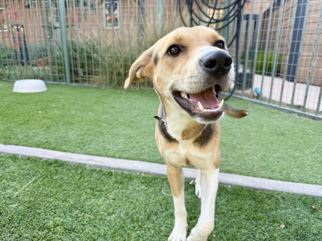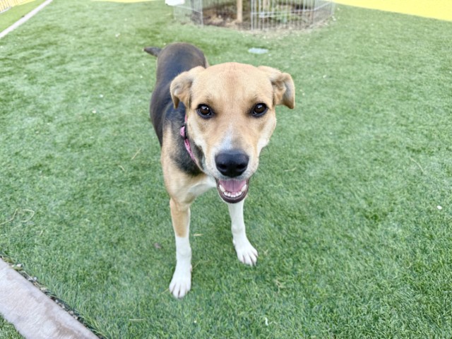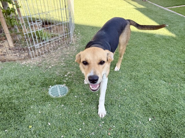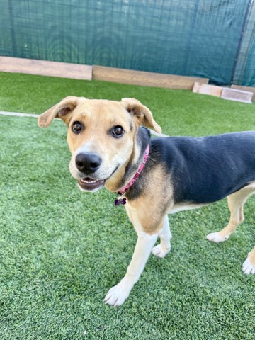 Say hello to Bagel, a sweet and spunky 42 pound Beagle mix who’s ready to find her forever home! Bagel is friendly, playful, and full of personality. She gets along wonderfully with other dogs and loves making new friends, human or canine! She walks nicely on leash and enjoys outdoor adventures, especially if they involve a good game of fetch. She’s still polishing up her basic training, so she’s looking for an adopter who can keep helping her learn and grow. With her easygoing temperament and eagerness to please, she’ll be a quick study! Bagel’s affectionate nature and happy go lucky attitude make her a great fit for a variety of families, whether you’re looking for a playful companion or a cuddle buddy for lazy Sundays. If you’re ready to add a little joy (and maybe a few belly rubs) to your life, Bagel might just be your girl! She is microchipped, up to date on vaccinations and will be spayed soon!