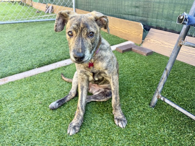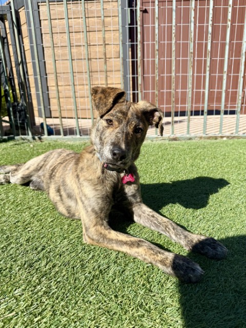 Belle is a 4 month old Greyhound mix weighing in at 18 pounds of pure sweetness. This gentle girl has a calm, loving personality and a playful spirit. She adores her toys and enjoys romping around with her doggy playmates. Belle gets along wonderfully with other dogs and is a smart little pup, she’s already showing how quickly she can pick up basic training. We expect Belle to grow into a medium sized dog, making her a great fit for a family ready for the fun, structure, and responsibility of raising a young puppy. Belle is up to date on vaccinations, microchipped, and spayed. She’s all set for her fresh start and can’t wait to find a forever home where she’ll be loved and cherished. If you’re ready to welcome a sweet, bright, and affectionate companion into your life, Belle is ready to meet you!