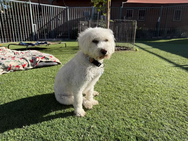 Bubbie is a 1 year old Poodle mix with a sweet, gentle nature and a bright, curious mind. He’s currently learning his basic commands and picking them up quickly, this smart boy is eager to please and full of potential. Bubbie loves people, enjoys the company of other dogs, and brings a playful, happy energy wherever he goes. Cute, charming, and affectionate, he’s the kind of dog who is always excited to be part of the action while still soaking up attention from his favorite humans. Bubbie would thrive in a home that’s ready to continue his training and enjoy all the fun and love he has to offer.