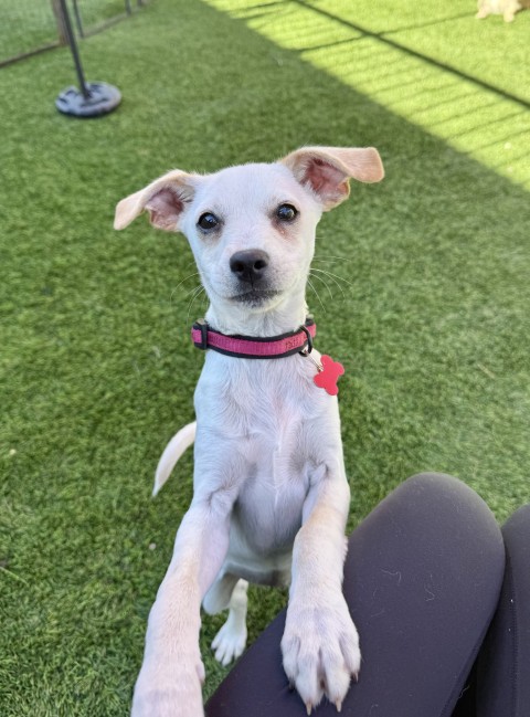 Cambria is an adorable 3 month old Chihuahua mix with a bubbly personality and a heart full of love. This sweet girl is friendly, playful, and already showing how smart she is, she’s quickly picking up her basic puppy training and sits politely for treats. Cambria gets along wonderfully with other dogs and would be a great fit for a variety of homes. Like all puppies, she’ll need an adopter who’s ready to continue her training and guide her as she grows into a confident, well mannered companion. If you’re ready for the fun and responsibility of a new puppy, come meet Cambria today, she’s ready to melt your heart!