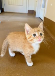 Adopt Citrus! A sweet and spunky 2-month-old orange domestic shorthair kitten is ready to bring sunshine into your life! Citrus is the perfect blend of playful and affectionate—she’ll keep you entertained for hours with her love of simple string toys and anything that moves. Healthy, microchipped, and up to date on all her vaccinations, Citrus is set for a bright future. She’ll be spayed soon and is all set to find her forever family. If you’re looking for a little ray of sunshine with a big personality, Citrus is the kitten for you!
