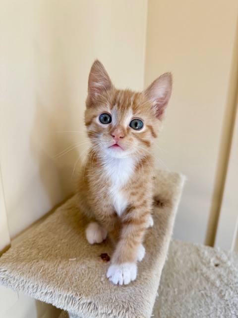 Adopt Citrus! A sweet and spunky 2-month-old orange domestic shorthair kitten is ready to bring sunshine into your life! Citrus is the perfect blend of playful and affectionate—she’ll keep you entertained for hours with her love of simple string toys and anything that moves. Healthy, microchipped, and up to date on all her vaccinations, Citrus is set for a bright future. She’ll be spayed soon and is all set to find her forever family. If you’re looking for a little ray of sunshine with a big personality, Citrus is the kitten for you!