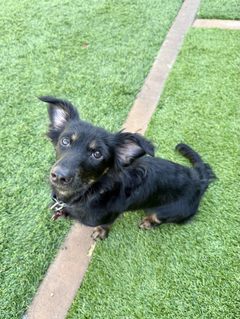 Crouton is a charming 2 year old Dachshund mix with a big personality packed into a little body. This sweet boy is friendly with other dogs, but what he truly wants is to be right by your side. He loves attention from people, so don’t be surprised when he rolls over for belly rubs the moment you start petting him! Crouton is up to date on vaccinations, microchipped, and will be neutered soon. He’s ready to bring joy, companionship, and a whole lot of adorable antics to his forever home. If you’re looking for a loyal shadow with a wagging tail, Crouton might just be your perfect match! Weighs 11 lbs.