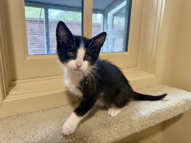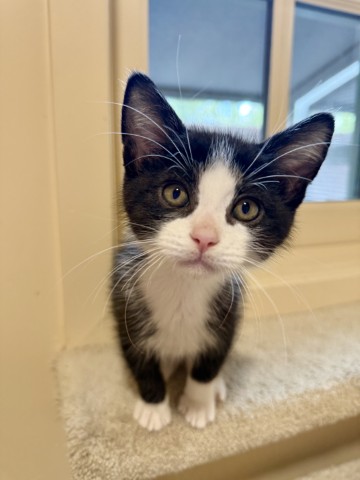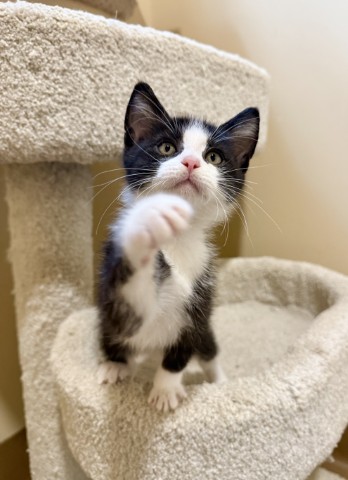 Dennis is an almost 2 month old, black and white bundle of joy who’s ready to charm his way into your heart. This adorable little boy is full of spunk and playful energy, he’ll keep you entertained all day with his silly antics and curious nature! Super friendly and social, Dennis loves meeting new people and won’t hesitate to hop right into your lap for snuggles. He’s the perfect mix of fun and affection. Dennis is microchipped, up to date on vaccinations, and neutered, so he’s all set for his fresh start in a loving forever home.