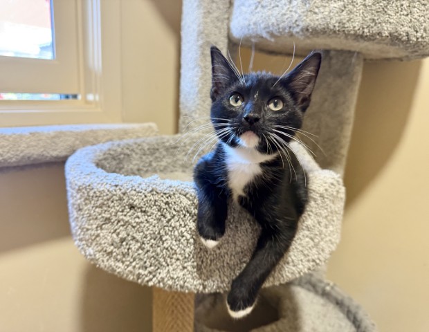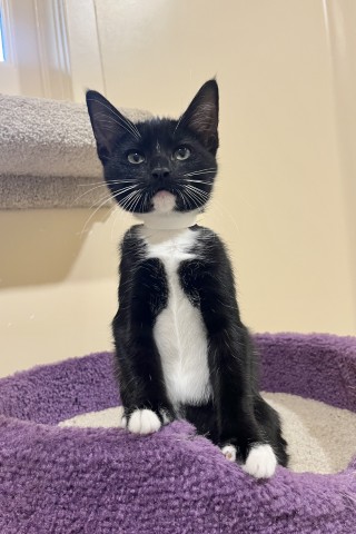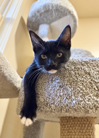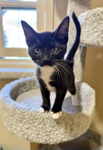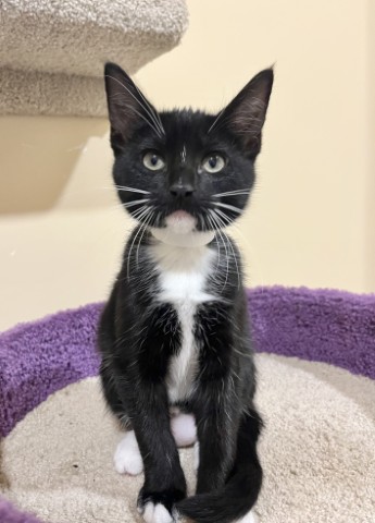 Say hello to Destiny, a sweet and snuggly little tuxedo girl with a playful spirit! At just 2 months old, Destiny is already stealing hearts with her gentle purrs and love for cuddles. Whether she’s batting around her favorite toy or curling up for a cozy nap, she’s always dreaming of finding her forever family. Destiny spends her days lounging like a queen, waiting patiently for her next visitor (or cuddle session!). She’s affectionate, curious, and has a calm, loving nature that makes her a perfect companion for just about anyone. If you’re looking for a kitten that’s equal parts playful and affectionate, Destiny might just be the one your heart’s been waiting for. Come meet her, you might just find that she’s your destiny too.