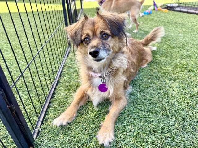 Edamame is a 4 year old, 15-pound Chihuahua mix with a heart as big as her adorable fluffy ears! This sweet little lady loves nothing more than curling up in your lap and soaking up all the affection she can get. She’s the perfect size to take along on adventures around town or to keep you company at home. Edamame gets along well with other dogs but would much rather spend her time with her favorite humans. She walks nicely on leash, is up to date on vaccinations, microchipped, and will be spayed soon. If you’re looking for a loving, loyal companion who’s happiest by your side, Edamame might just be your perfect match!
