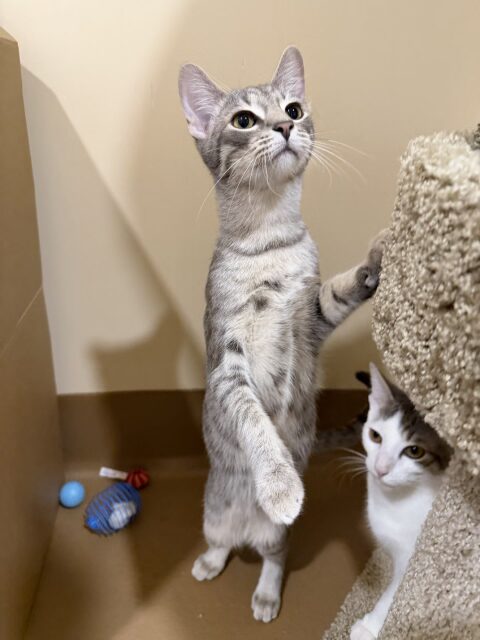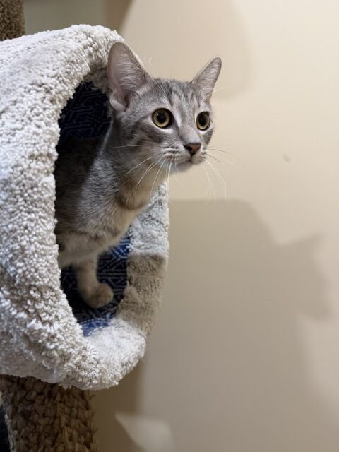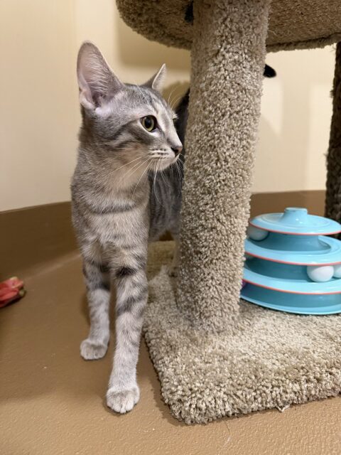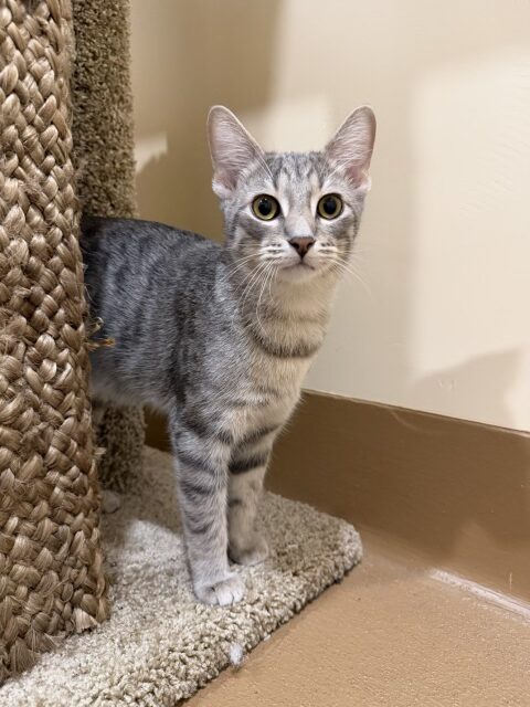 Flute is a sweet 5 month old Domestic Shorthair tabby with a gentle nature and a quietly charming personality. He can be a little shy at first, but once Flute feels safe and begins to trust you, he reveals just how loving and affectionate he truly is. Clever, soft-hearted, and incredibly kind, he enjoys calm companionship and gets along well with other cats. Flute is a healthy young cat who would thrive in a patient, loving home where he can continue to build confidence and feel secure. He is microchipped, neutered, and up to date on vaccinations, and he’s ready to find a home where he can be cherished.