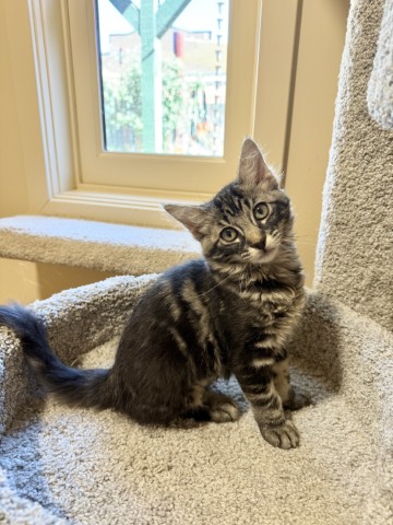 This 2 month old Domestic Medium Hair kitten is as lucky as her name and twice as charming! Fortune is bursting with energy, full of love, and always ready to play. Whether she’s chasing toys or curling up for cuddles, she brings just the right mix of spunk and sweetness. Fortune is spayed, up to date on her vaccinations, and microchipped, she’s all set and ready to find her forever home. She’ll thrive with an adopter who’s ready for the fun (and responsibility!) that comes with a curious, playful kitten. If you’re looking for a furry bundle of joy to light up your life, Fortune is ready to hop right into your heart!