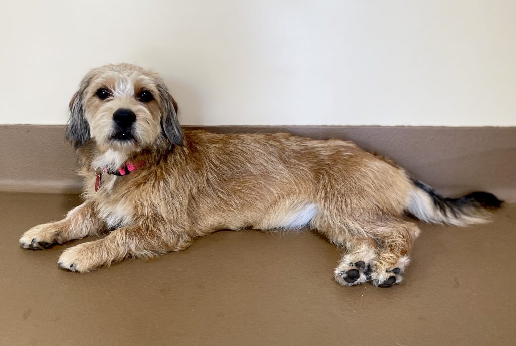 Sweet Goldie is one of our recent rescues. She is a 1 year old terrier mix and around 30 pounds of pure love. Goldie loves other dogs and every person she meets. A true gem! She has been vaccinated and chipped. She will be spayed before adoption. Approx 27 lbs.