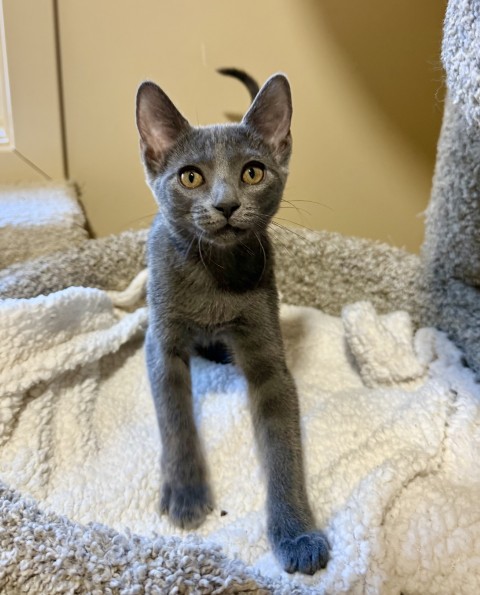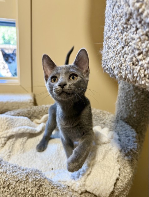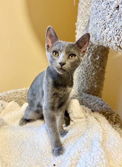 Kadabra is a beautiful 3 month old grey Domestic Shorthair kitten with a petite frame and a heart full of love. This little girl is playful, curious, and absolutely adores her toys. When she’s not exploring or pouncing on something fun, she’s seeking out cuddles and soaking up all the attention she can get from her favorite humans. Kadabra is sweet, affectionate, and ready to charm her way into the hearts of her forever family. If you’re prepared for the joy, and responsibility, of bringing home a young kitten, come meet Kadabra! She can’t wait to find a family to call her own. She is microchipped, up to date on vaccinations, and scheduled to be spayed soon. Could Kadabra be your new magical companion?