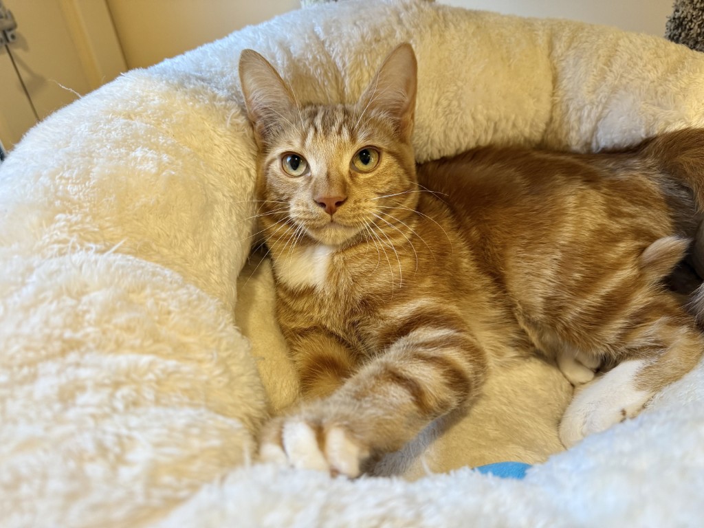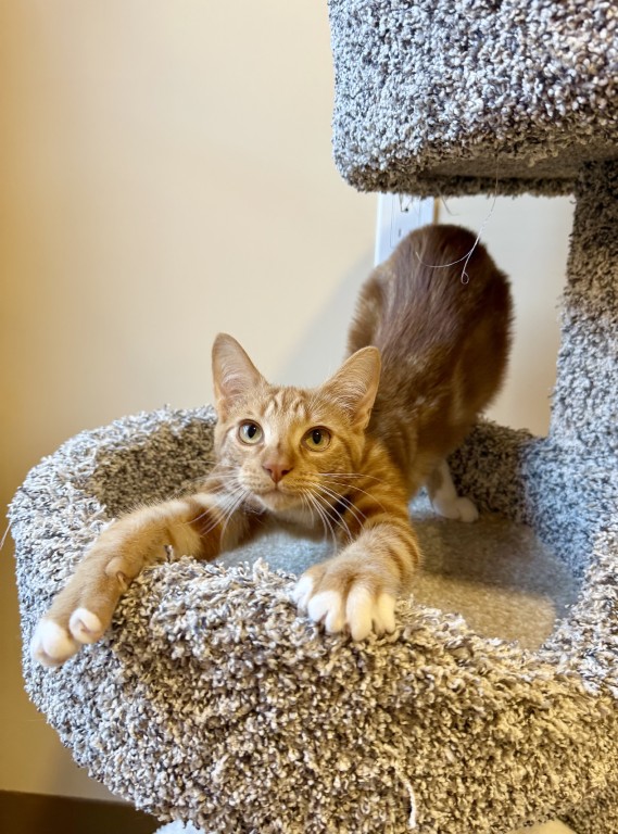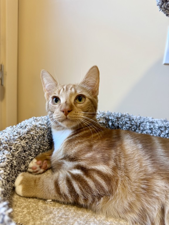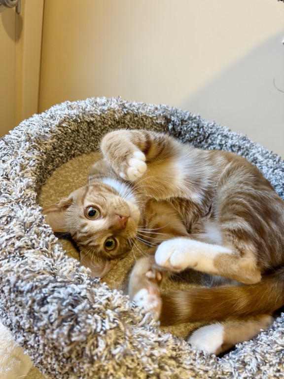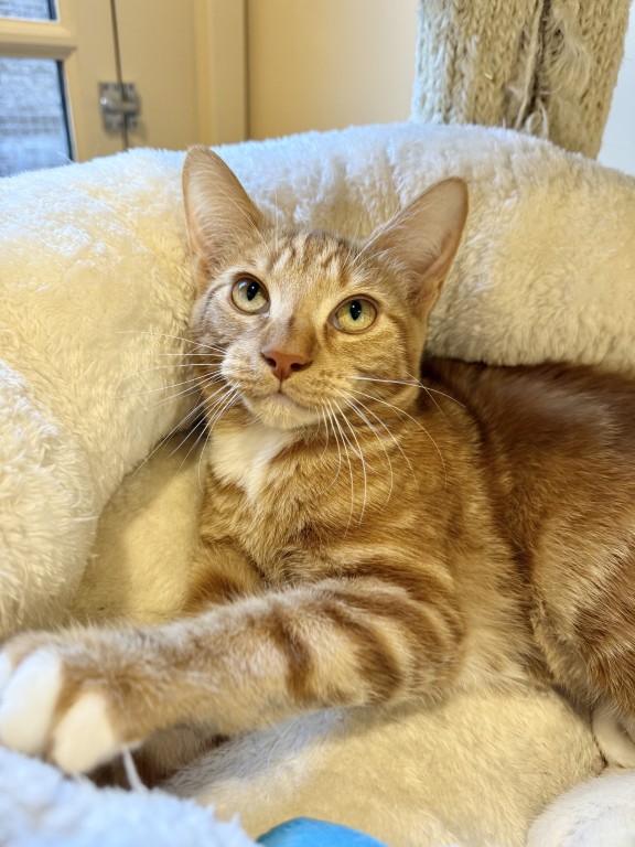 This spunky 5-month-old orange tabby is full of life, love, and personality! Kettlecorn is a domestic shorthair boy who was rescued from a high-intake shelter when he was sick and in need of urgent medical care. With lots of love and attention, he’s now healthy, thriving, and ready to find his forever home. Kettlecorn is the perfect mix of playful and affectionate, he’ll chase toys with enthusiasm and then curl up in your lap for some serious cuddle time. He’s neutered, microchipped, and up to date on all vaccinations. All that’s missing now is a family to call his own.
