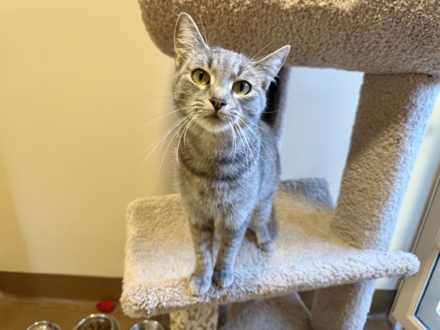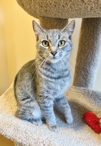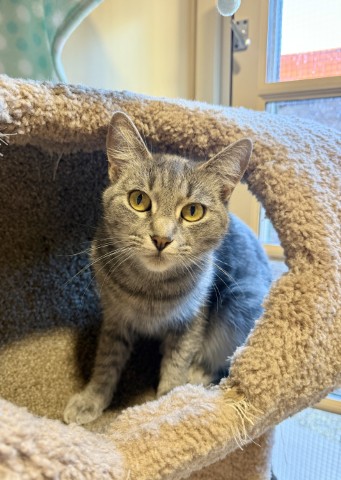 Milk is a one of a kind sweetheart with a heart as soft as her velvety grey coat. At just one year old, this loving girl has already played the role of a devoted mama, not only to her own kittens but also to a few orphaned babies she lovingly took under her wing after being rescued from a heartbreaking hoarding situation. Now that all her little ones have found their forever homes, it’s finally Milk’s turn to be pampered and adored. She’s incredibly friendly and adores visits from staff and volunteers at our rescue center. Whether it’s cuddle time or just sharing quiet company, Milk has a way of warming every heart she meets. Milk is up to date on vaccinations, microchipped, and will be spayed soon. She’s ready to leave her past behind and start a brand new chapter with a family who will treasure her for the nurturing, affectionate soul she is. Come meet Milk, you’ll fall in love the moment she curls up in your lap!