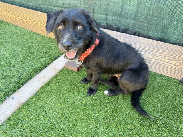 Nova is a sweet 3 year old, 20 pound terrier mix with the perfect blend of playful energy and laid back charm. With her adorable scruffy coat and funny personality, she wins hearts everywhere she goes. Nova loves to play, but she’s just as happy to lounge around and watch her doggy friends have all the fun. She gets along wonderfully with other dogs and walks well on leash, making her a great companion for strolls, adventures, or cozy afternoons at home. Easygoing and affectionate, Nova is always ready for a good head scratch and some quality time with her humans. She is up to date on vaccinations, microchipped, and spayed, so she’s all set for her forever family. If you’re looking for a friendly, low-maintenance, and loving pup, Nova might just be your perfect match!