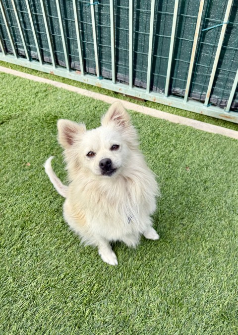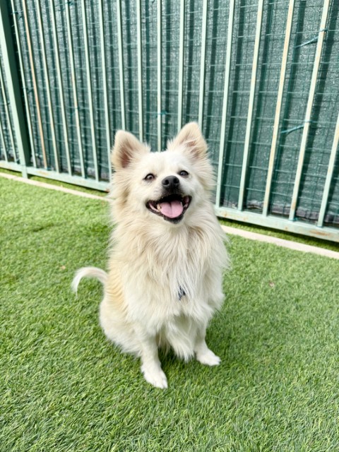 Palo is a 5 year old Pomeranian mix weighing 17 pounds, and he’s full of personality! This spunky little guy is super friendly and greets everyone he meets with excitement and enthusiasm. Palo came to us from a high intake shelter and is now settling in beautifully at our rescue center. Palo gets along well with other dogs and would love a home where he can continue to learn and thrive. He’s up to date on vaccinations, will be neutered soon, and is already showing how smart he is, he knows how to sit for treats and is eager to keep learning! Palo will do best with an adopter who’s willing to continue his basic training and enjoy his playful, affectionate nature.