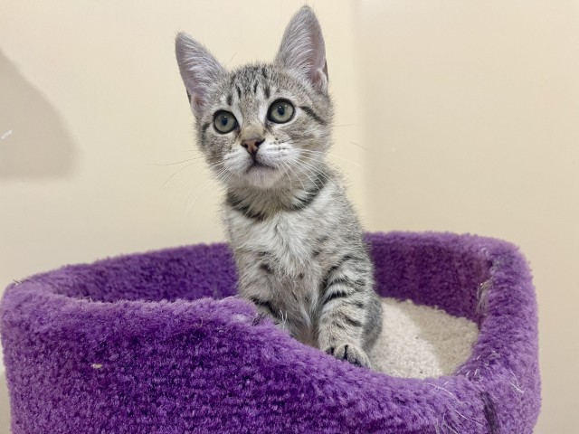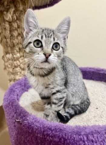Pandora is a precious 2 month old kitten who is all things sweet, playful, and full of kitten charm. Whether she’s chasing toys, exploring new corners, or showing off her tiny pounces, she’s guaranteed to fill your home with joy. This little sweetheart is up to date on her vaccinations, microchipped, and will be spayed soon. When she’s not busy being adorable, Pandora loves to snuggle up in a cozy spot, she’s especially fond of curling up next to you while you work, making her the purr-fect work from home buddy. Pandora is currently looking for her forever home where she can grow, play, and be loved endlessly. If you’re ready to bring a bundle of affection and fun into your life, Pandora is eager to meet you!