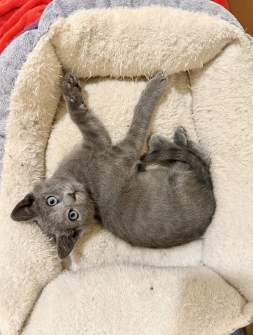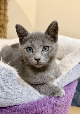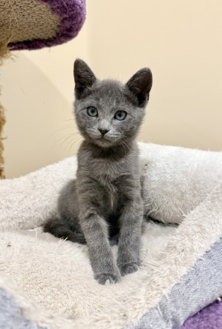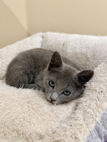 Phoenix is a 2 month old Domestic Shorthair kitten with the most stunning blue eyes you’ve ever seen. This gentle little soul has a calm, observant personality and would do best in a quiet home where he can feel safe and loved. While his siblings tumble and play, Phoenix prefers to watch from his favorite perch, looking every bit the dignified little gentleman. He may be shy at first, but once he trusts you, he’ll melt your heart with his sweet nature. Phoenix is up to date on his vaccinations, microchipped, and will be neutered soon. If you’re ready to welcome a tender-hearted kitten into your life, come meet Phoenix today, you might just find your perfect companion.
