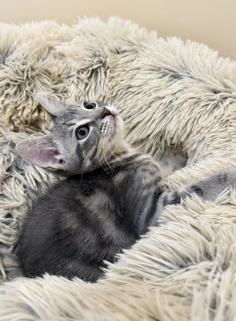 Pita is a 2 month old Domestic Shorthair kitten with a soft grey coat and a heart full of love. This sweet boy is playful, affectionate, and always up for a cuddle or a game. He’s got a curious nature and loves exploring his world, especially if toys or treats are involved! Pita is looking for a forever home that’s ready for the fun and responsibility of raising a young kitten. If you’re prepared to offer love, care, and lots of playtime, Pita is ready to be your new best friend!