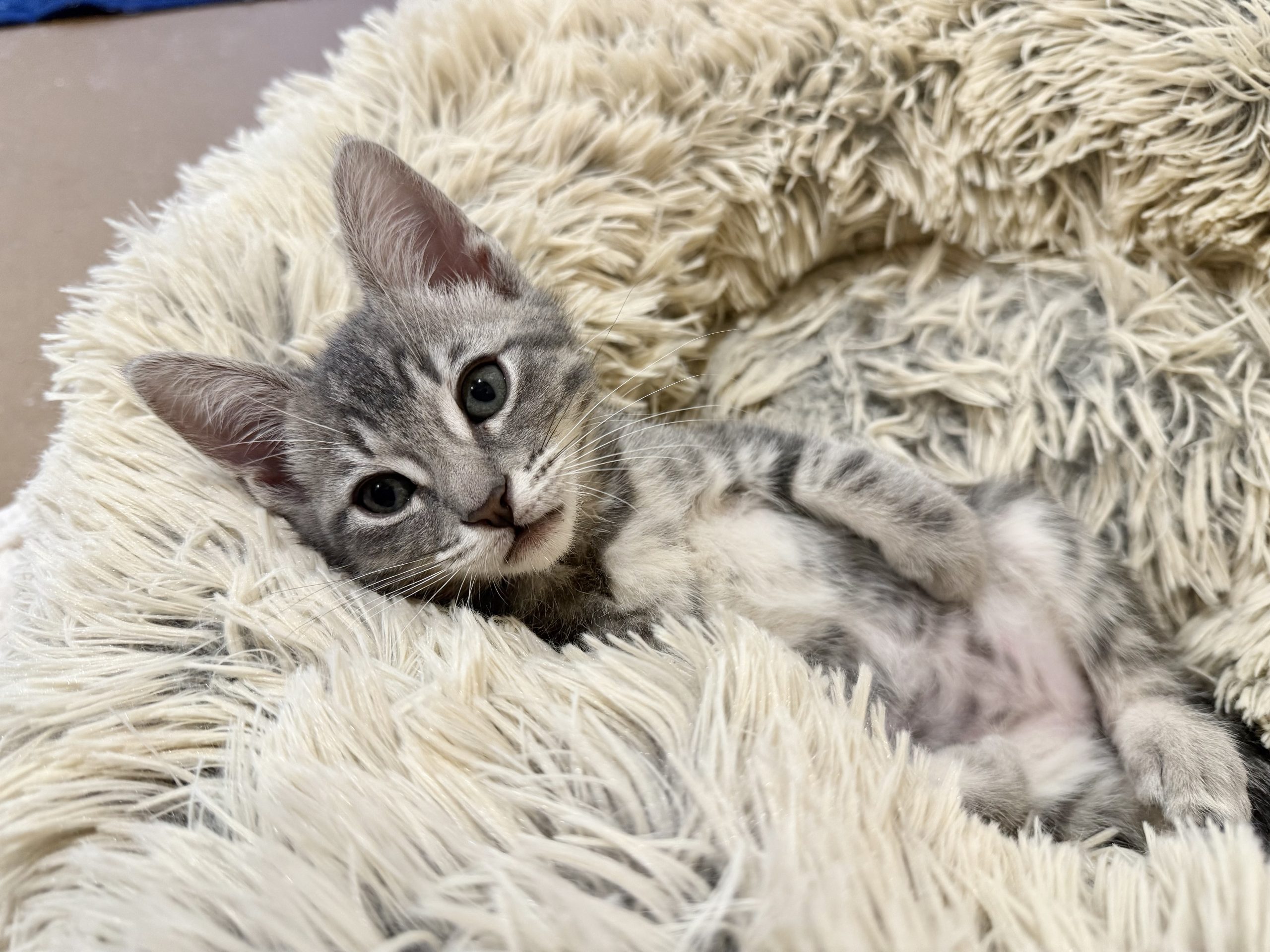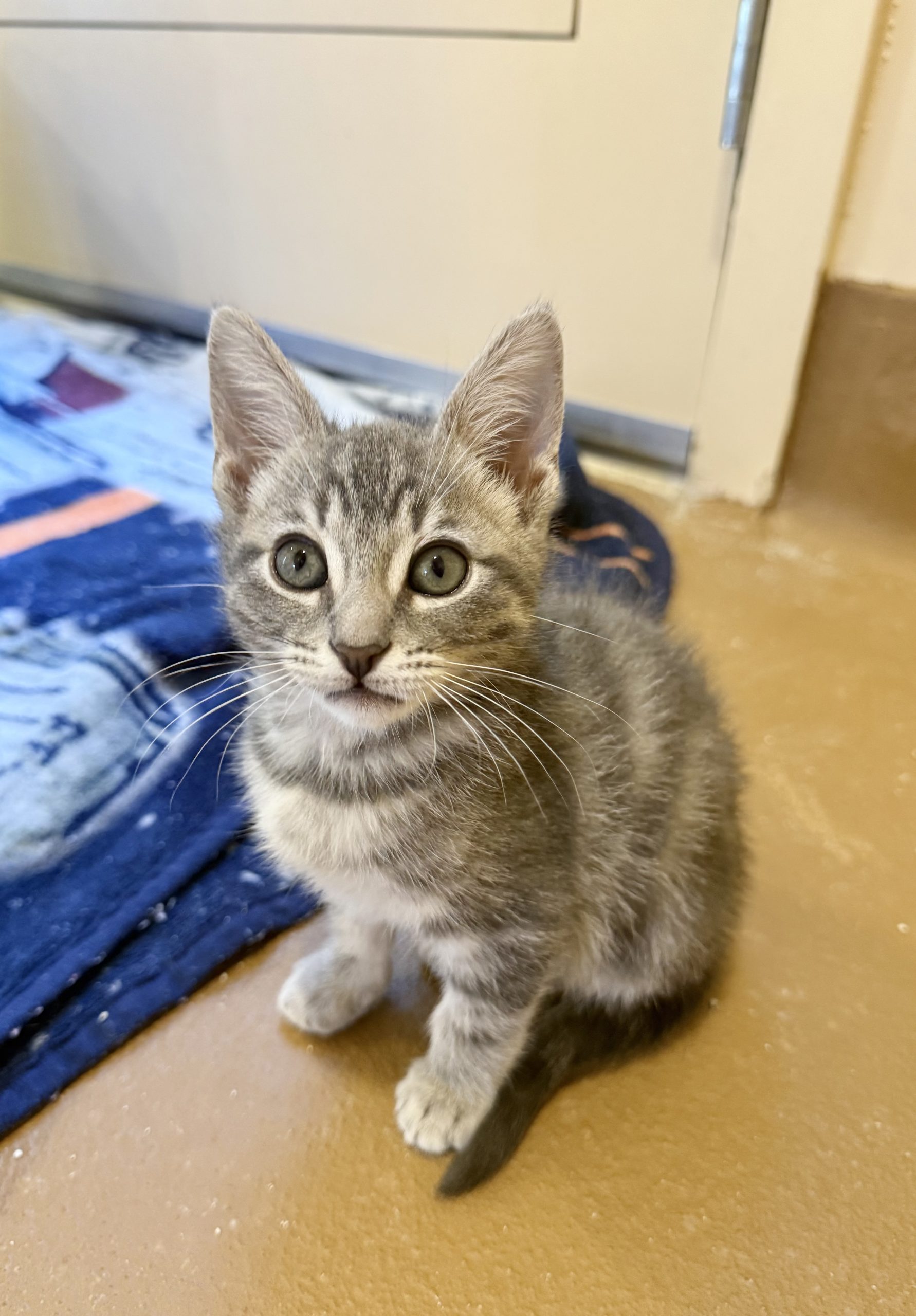 Pita is a 2 month old Domestic Shorthair kitten with a soft grey coat and a heart full of love. This sweet boy is playful, affectionate, and always up for a cuddle or a game. He’s got a curious nature and loves exploring his world, especially if toys or treats are involved! Pita is looking for a forever home that’s ready for the fun and responsibility of raising a young kitten. If you’re prepared to offer love, care, and lots of playtime, Pita is ready to be your new best friend!