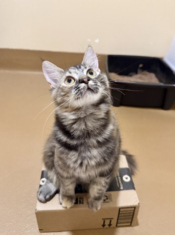 Prissy is a 5 month old Domestic Medium Hair beauty with a sweet and gentle spirit. This friendly girl loves spending her days watching the birds flutter by outside her kitty room, it’s her favorite kind of entertainment! When she’s not bird watching, Prissy enjoys romping and playing with her kitten friends, showing off her playful side. She’s affectionate and loves to come up for pets, rewarding you with her soft purrs and loving gaze. Prissy is vaccinated, microchipped, and spayed, all ready to find her perfect forever family.