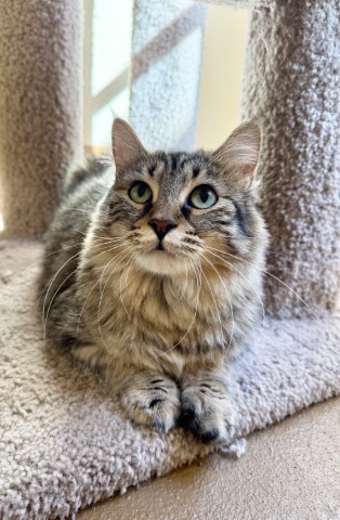Sparrow is a 1 year old Domestic Medium Hair with a heart as soft as her beautiful fur. This gentle mama has been through a lot in her young life, but despite a past filled with neglect, she remains incredibly sweet and open to love. With a calm and patient presence, Sparrow slowly comes out of her shell, step into her space, sit quietly, and she’ll soon approach you for head scratches and affection. She doesn’t ask for much, just a peaceful home and a kind human who will give her the care and love she’s always deserved. Sparrow is truly special. Her serene personality and quiet resilience make her a wonderful companion for someone looking to give a gentle cat a second chance at happiness. She is spayed, microchipped, and up to date on all her vaccinations, ready to leave her past behind and start a new chapter in a home filled with love.