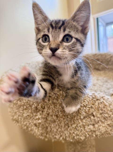 This 2 month old tabby is as adorable as they come, spirited, playful, and always ready to pounce into action! Tabasco is a loving little bundle of energy wrapped up in a tiny, irresistible package. He’s up to date on vaccinations, microchipped, and will be neutered soon. If you’re ready for all the fun (and responsibility!) that comes with raising a kitten, come meet Tabasco today. He just might spice up your life in the best way!