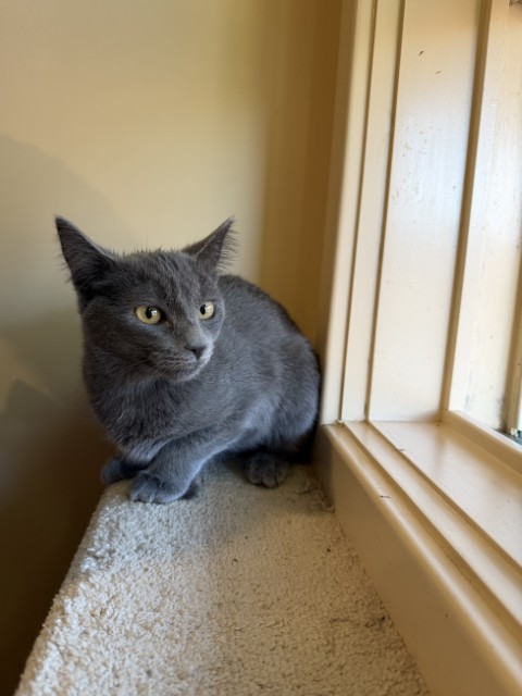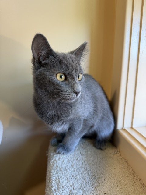 Zelda is a beautiful 4 month old grey Domestic Shorthair kitten with a gentle spirit and a soft, sweet nature. She may be a little shy at first, but it doesn’t take long for her to warm up and show her loving personality. Once she feels comfortable, Zelda is affectionate, calm, and enjoys being near her people. She gets along wonderfully with other cats and kittens and would be a great companion in a multi-cat home. Zelda is a kind, easygoing girl who just needs a little patience and love to truly shine. If you’re ready to give a young kitten a safe and nurturing home, come meet Zelda and let her win you over at her own pace. She is microchipped, up to date on vaccinations, and scheduled to be spayed soon. Could Zelda be the sweet new addition your family has been waiting for?